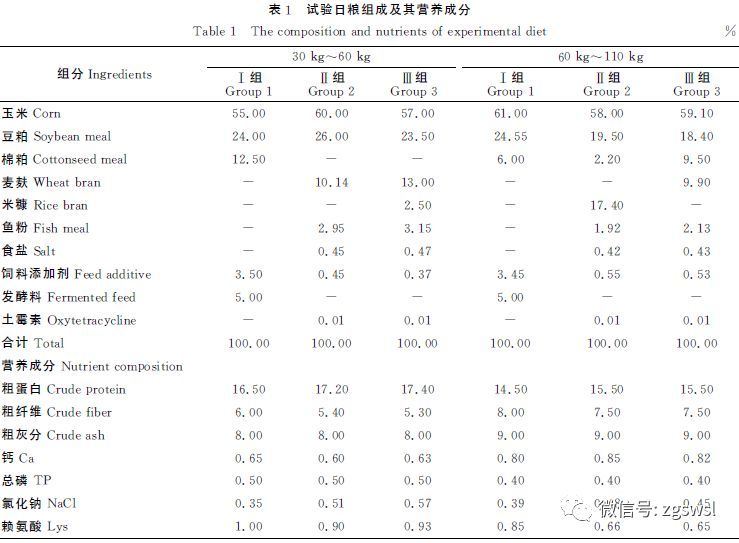 1.3.1 30~60kg階段“飼料Ⅰ組”飼料的制備